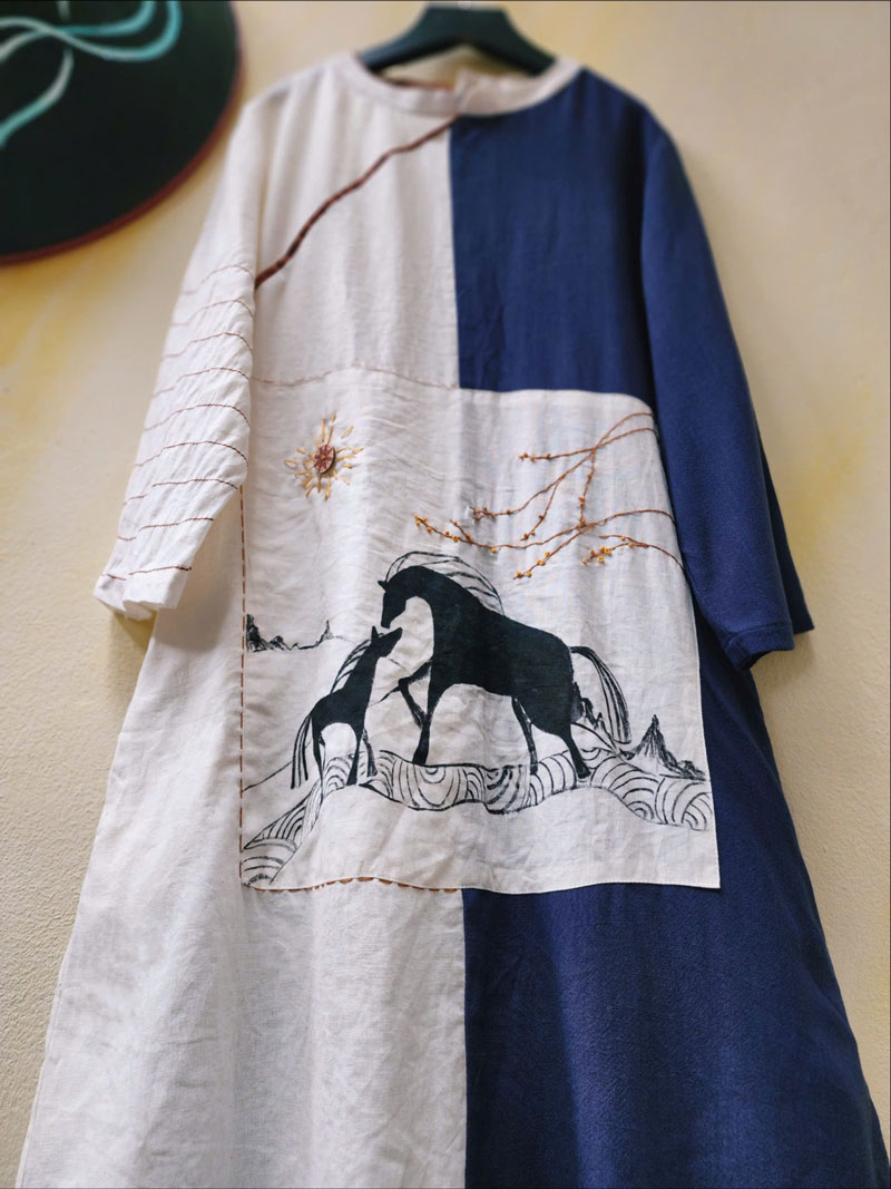Trên nền vải trầm ấm của đất – sắc màu của cội nguồn và bền bỉ – những nét vẽ tay thủ công hòa cùng mũi thêu hạt gạo hiện lên tinh tế. Từng đường kim không chỉ là kỹ thuật, mà là lời nhắc khẽ: “Đi chậm thôi, tim mình quan trọng lắm.” Thời trang, ở đây, trở thành ngôn ngữ của sự quan tâm và tự thương.