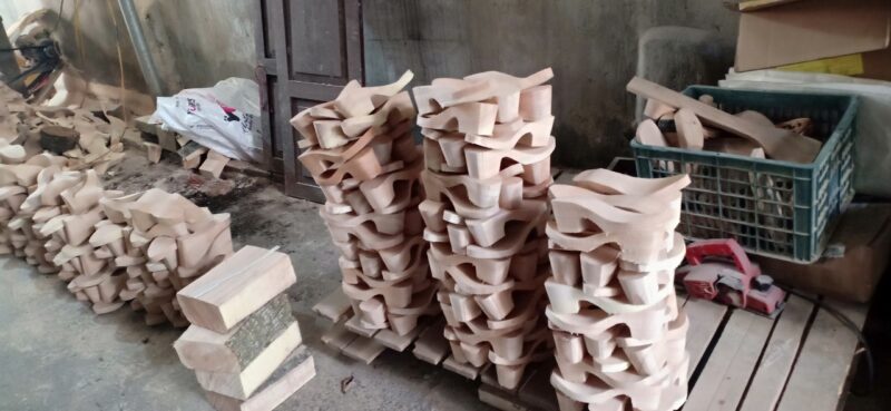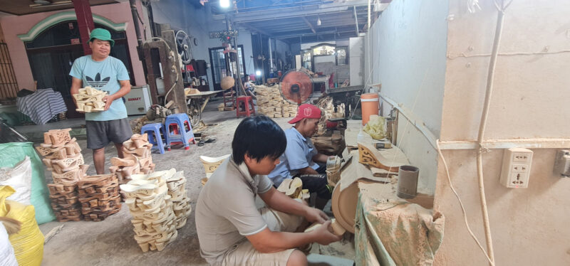 B2: Mài thô rồi cắt định hình dạng của chiếc guốc