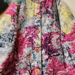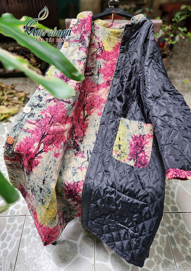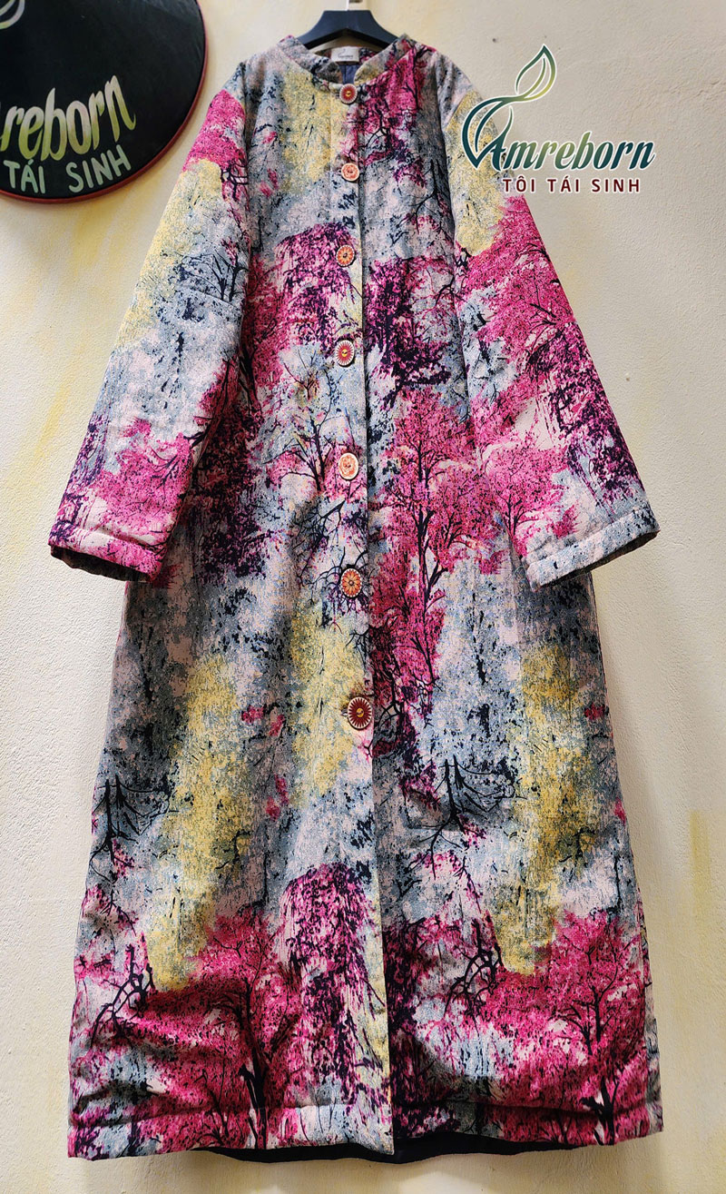 Áo chần bông 2 mặt dáng dài họa tiết rừng phong