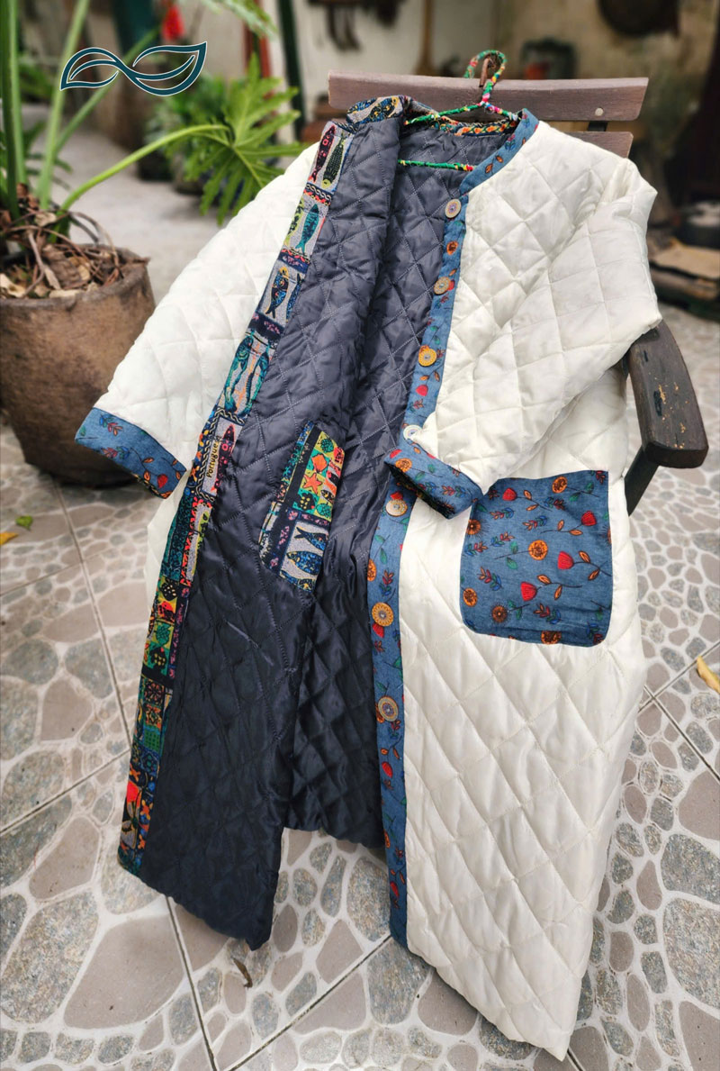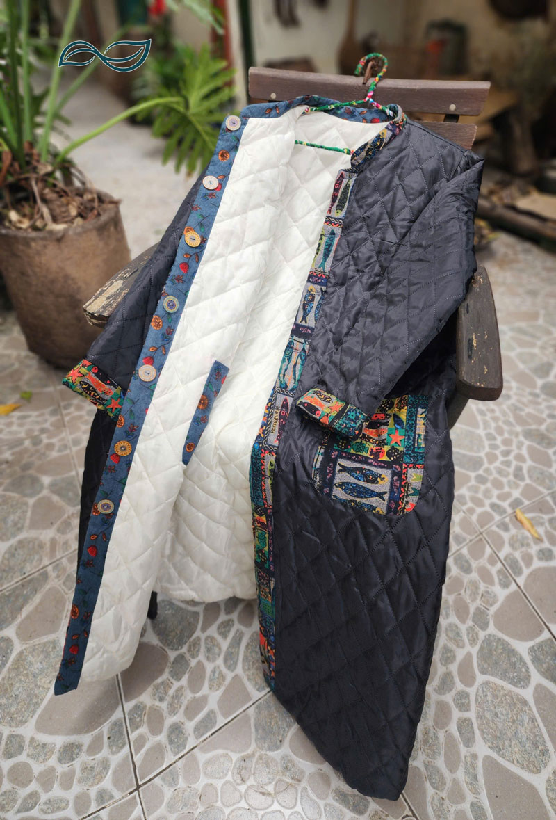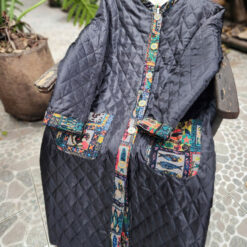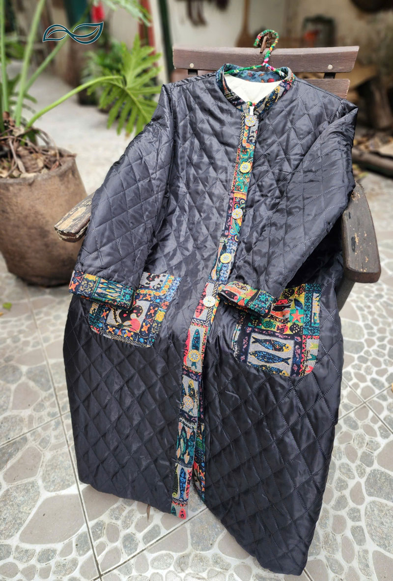Áo chần bông 2 mặt dáng dài nẹp viền họa tiết