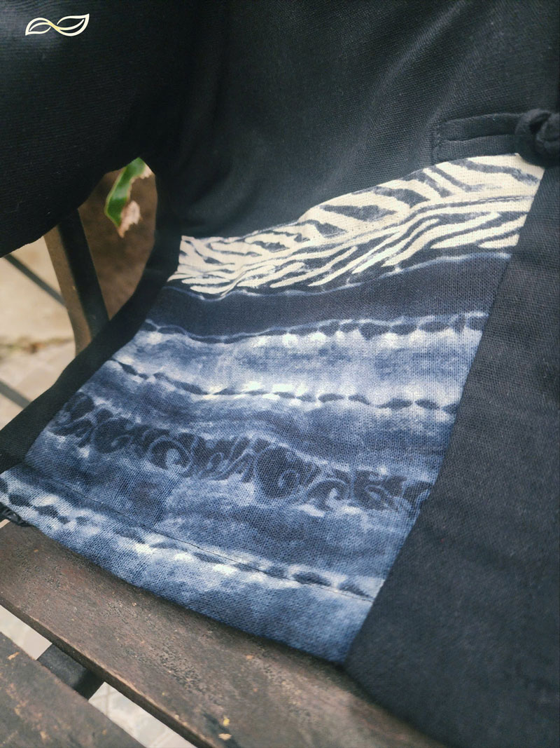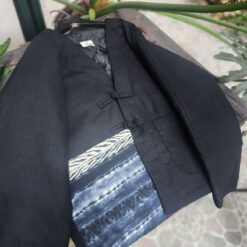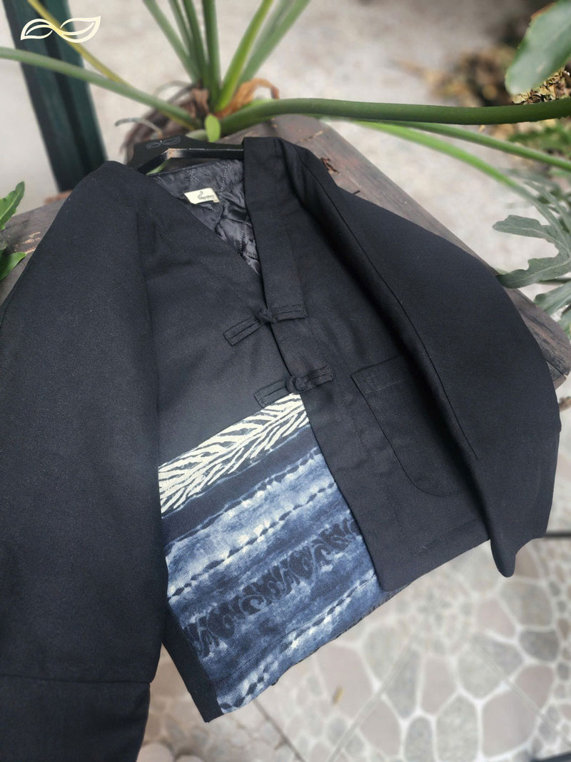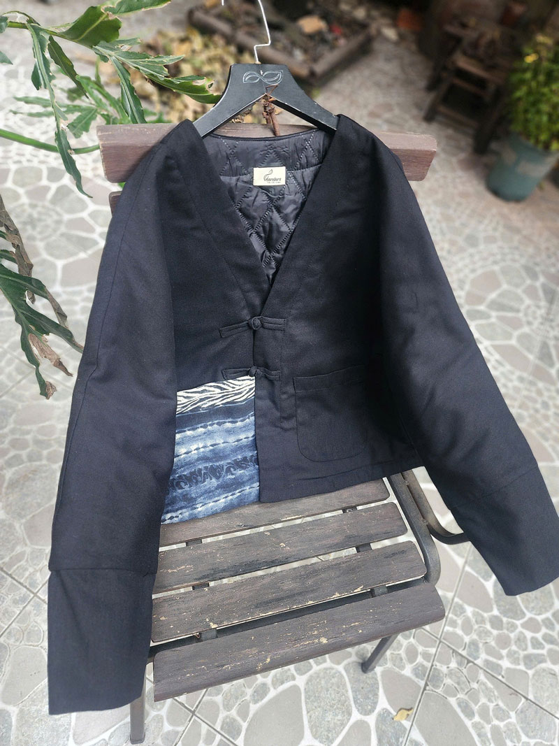 Áo chần bông 2 mặt dáng ngắn đáp túi vải nhuộm chàm