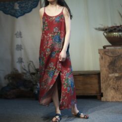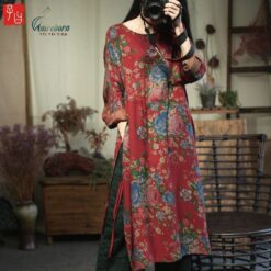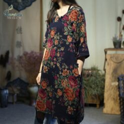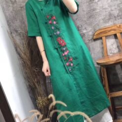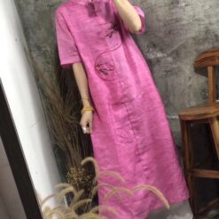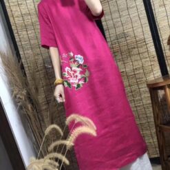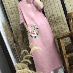 Áo dài cách điệu vải linen dáng suông tôn dáng thêu hoa