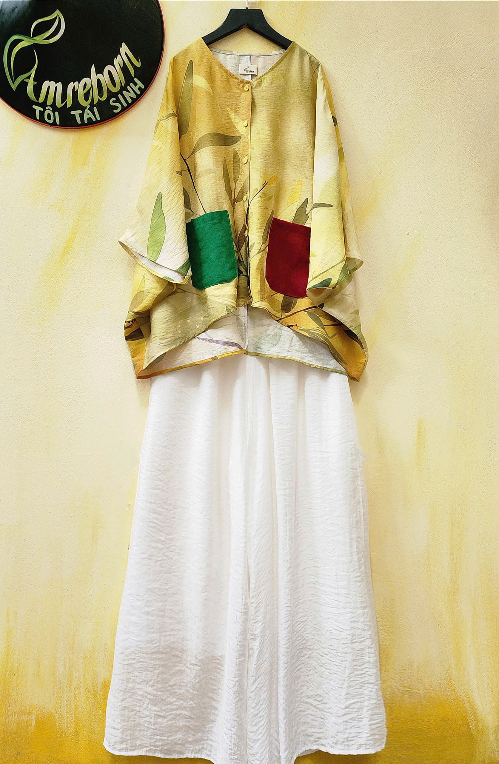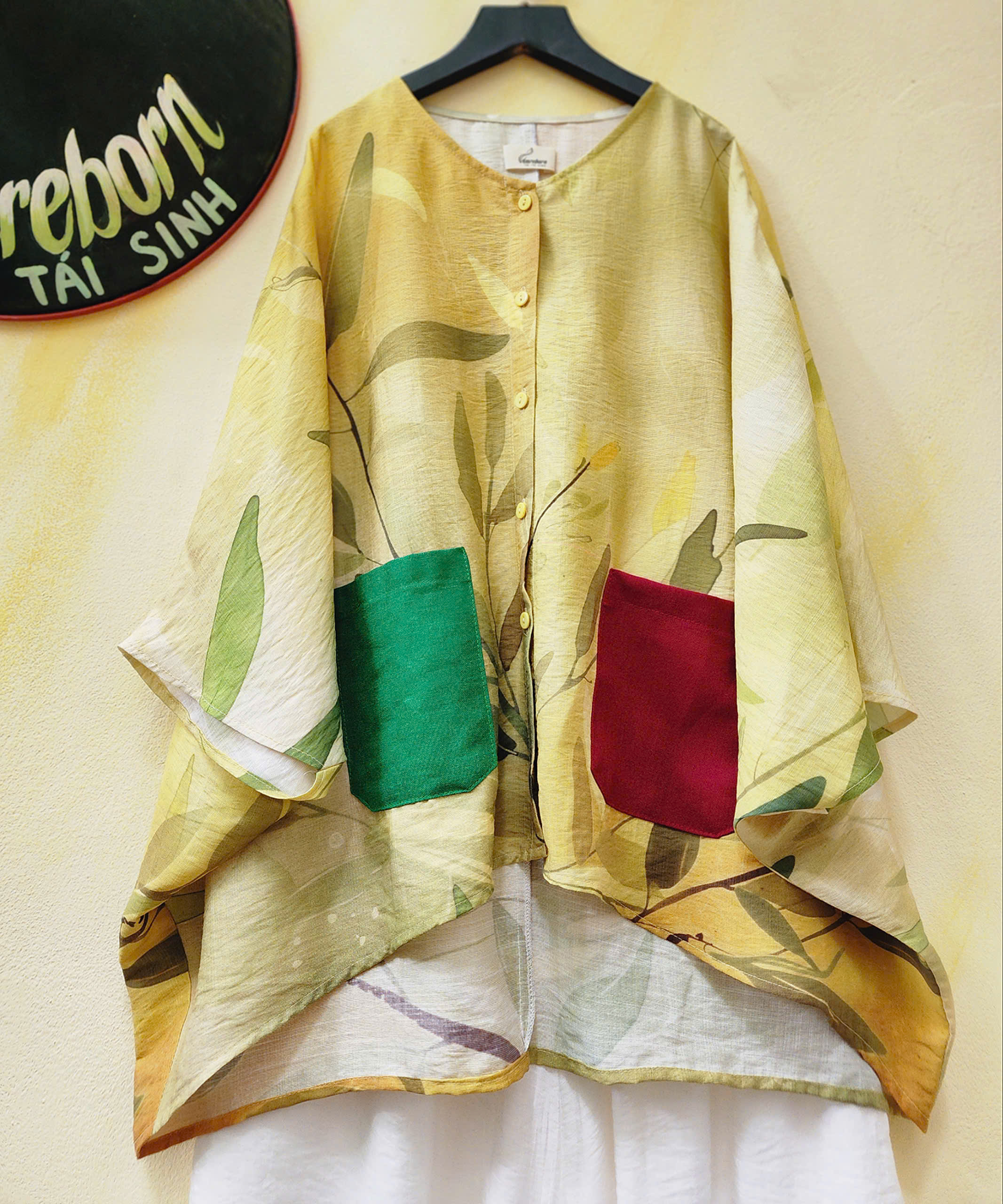 Áo đũi lụa dáng cánh dơi hoa cúc