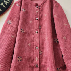 Áo nhung tăm đỏ dáng suông cam thêu hoa thị