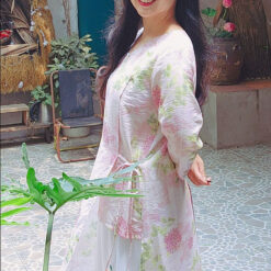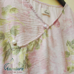 Áo vạt lệch thắt nơ hoa mẫu đơn hồng