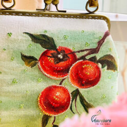 Combo túi xách và guốc mộc thiết kế vẽ tay quả hồng