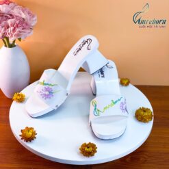 Guốc mộc thêu tên theo yêu cầu, guốc mộc bồ công anh