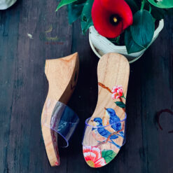 Guốc mộc Lệ Xuân uyên ương vẽ tay hoa cánh bướm