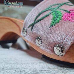 Guốc mộc nghệ thuật quai nhung the màu hồng thêu tay hoa cúc
