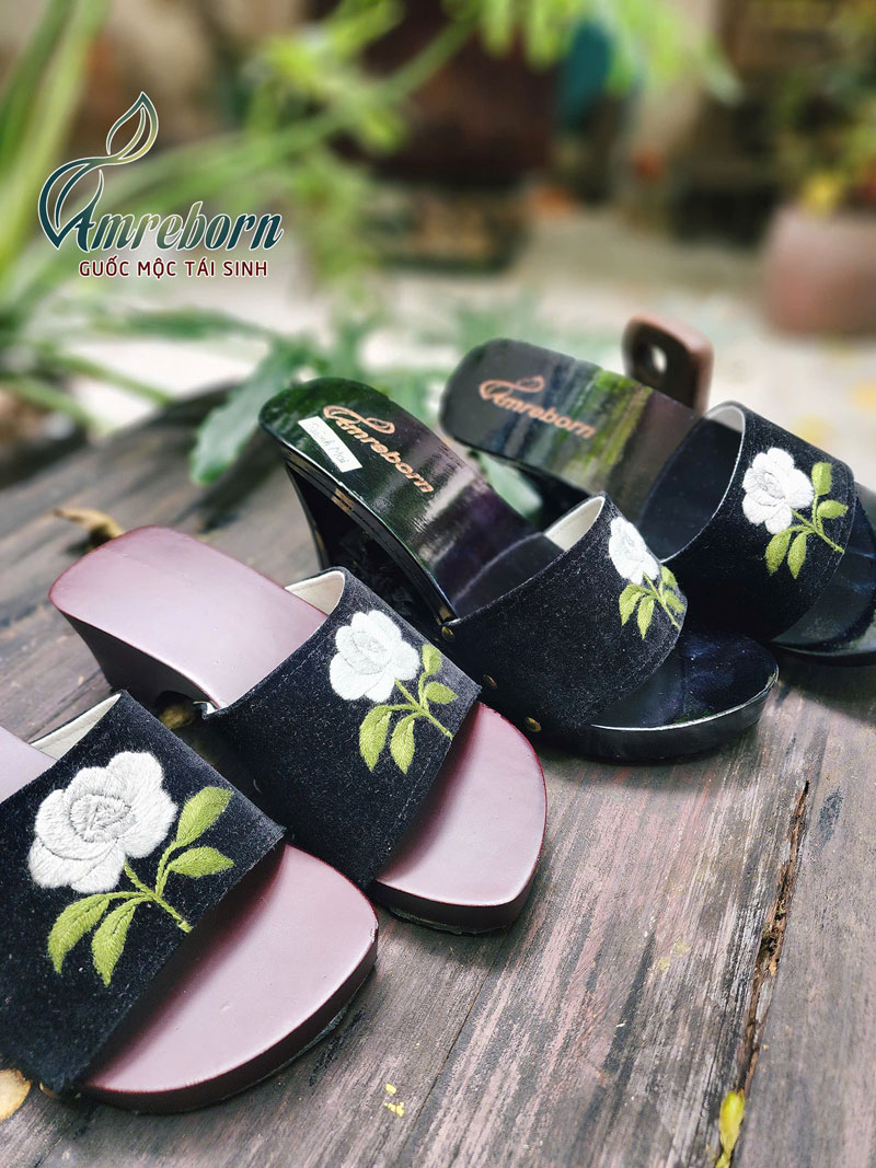 – Mang tính thẩm mỹ hơn: Guốc mộc tái sinh AmReborn phát huy triệt để kỹ năng và kinh nghiệm làm đồ handmade vốn có như: vẽ tay, thêu tay, đính kết thủ công… để tạo ra những họa tiết riêng hoặc đồng bộ với họa tiết trên khuôn guốc để đưa lên quai guốc tạo nên một sản phẩm tác phẩm hoàn mỹ