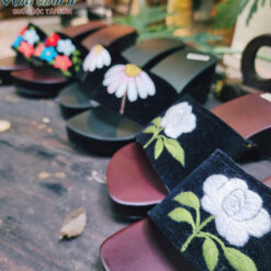 Guốc mộc nghệ thuật thêu tay thủy mặc hoa hồng trắng