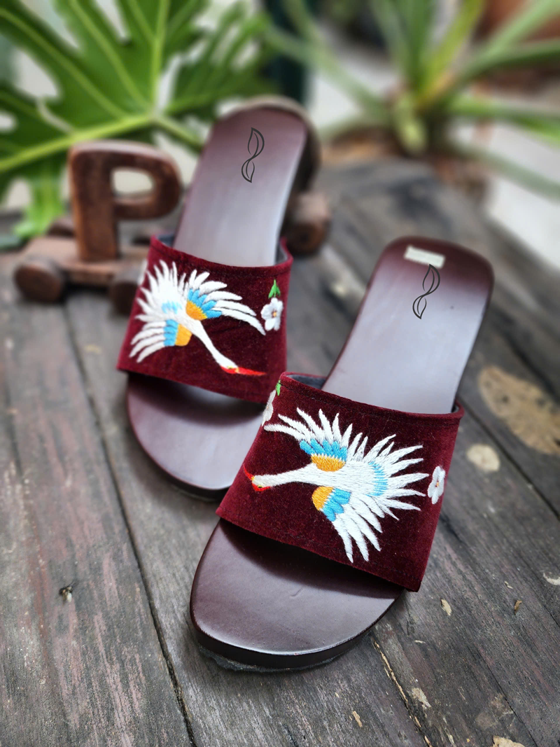 Guốc mộc tái sinh nghệ thuật thêu tay Bạch Hạc