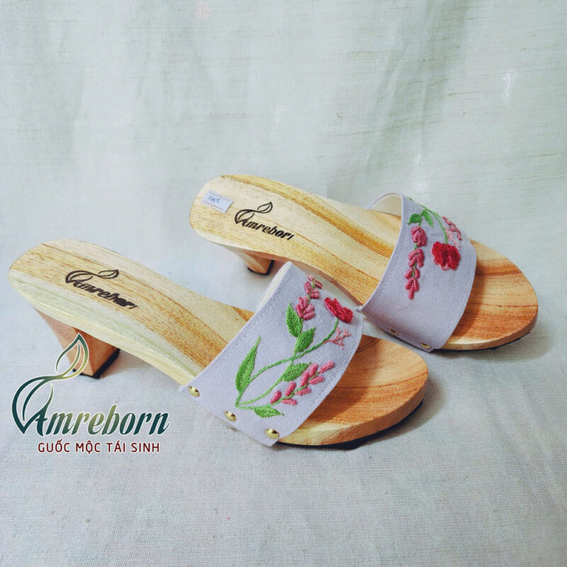 Guốc mộc thêu tay hoa hồng tỉ muội