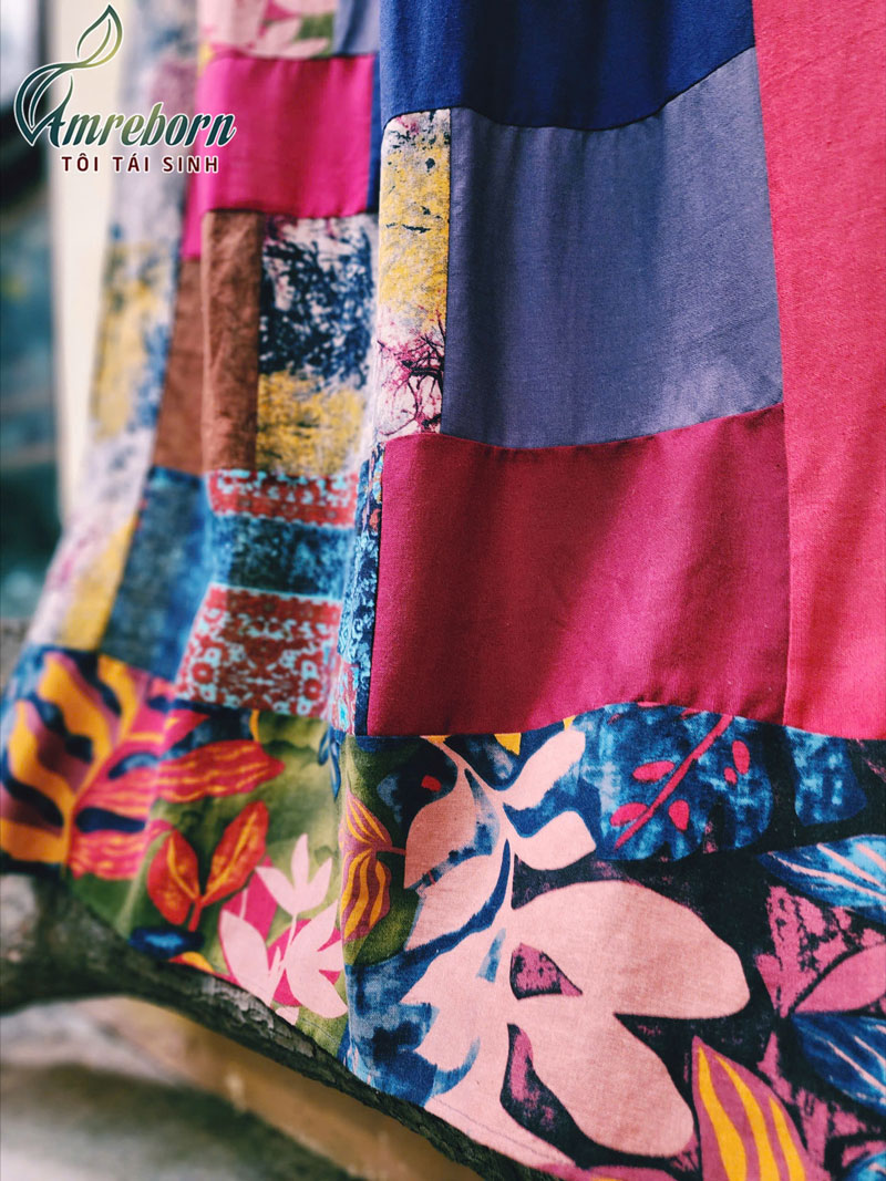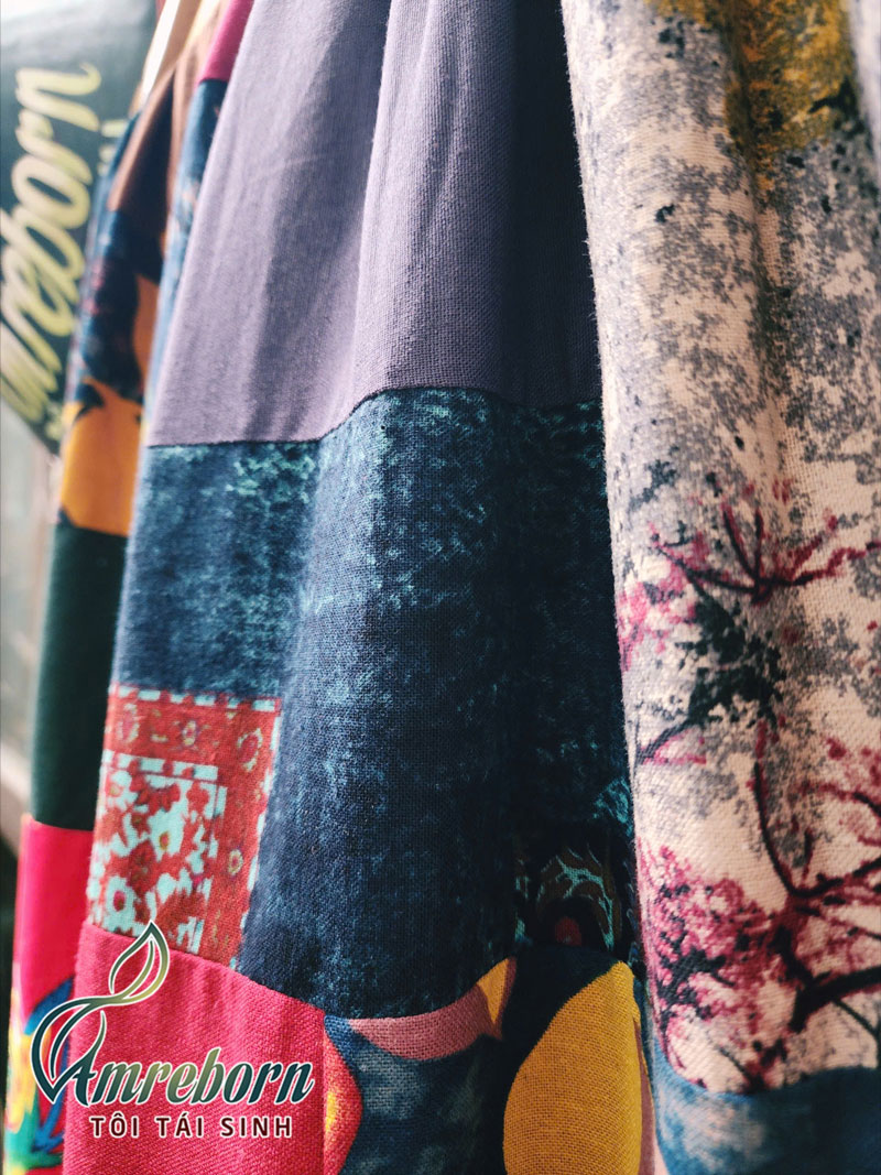 Khăn tái sinh vải linen ghép vải đa sắc
