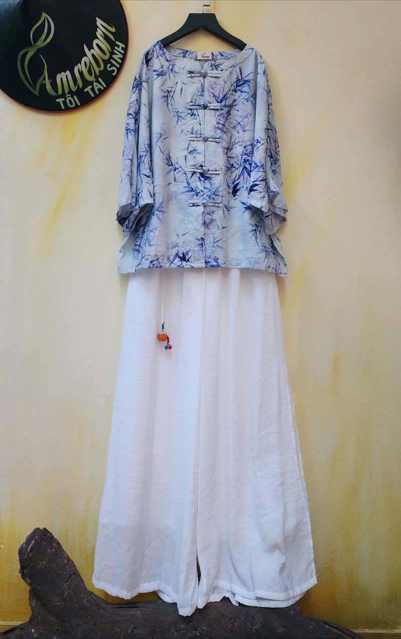 Pháp phục họa tiết tre xanh Thủy mặc Trúc Lam