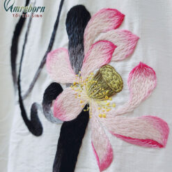Set áo dài trắng pháp phục thêu tay thư pháp sen chữ Cha Mẹ