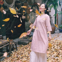 Váy áo dài cách tân thêu tay hoa mận