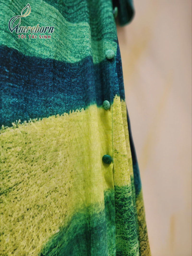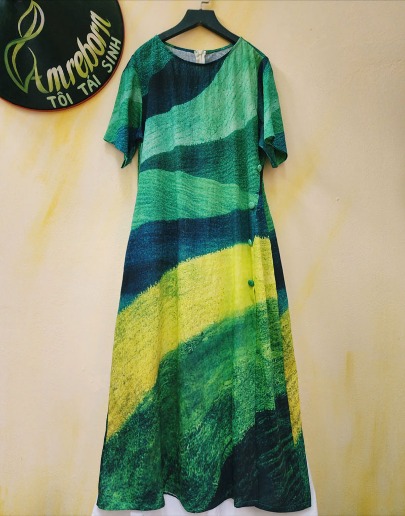 Váy áo dài cúc chéo họa tiết ruộng bậc thang