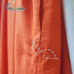 Váy áo dài đũi tơ thêu nơ tái sinh đỏ cam