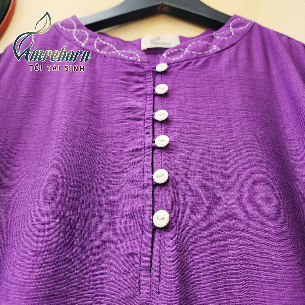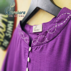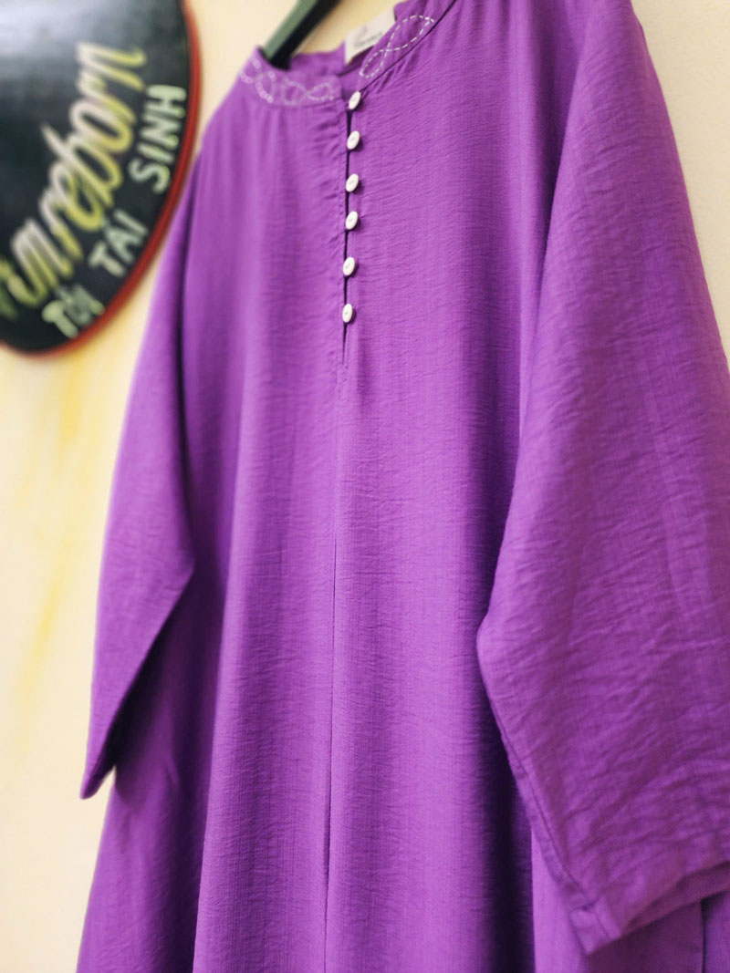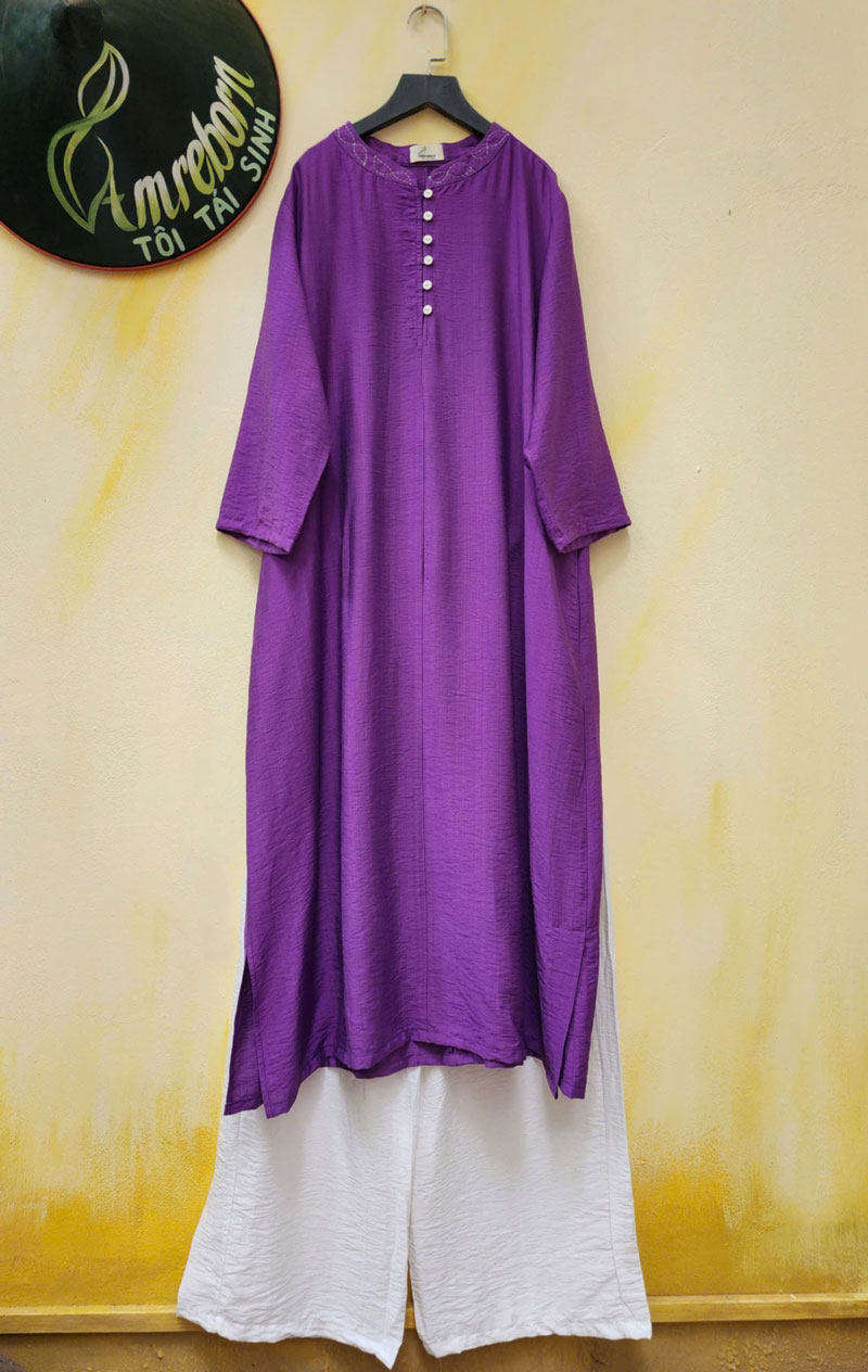 Váy áo dài đũi tơ thêu nơ tái sinh tím huế