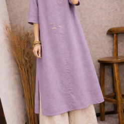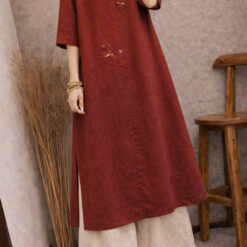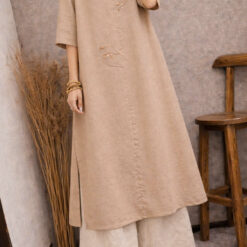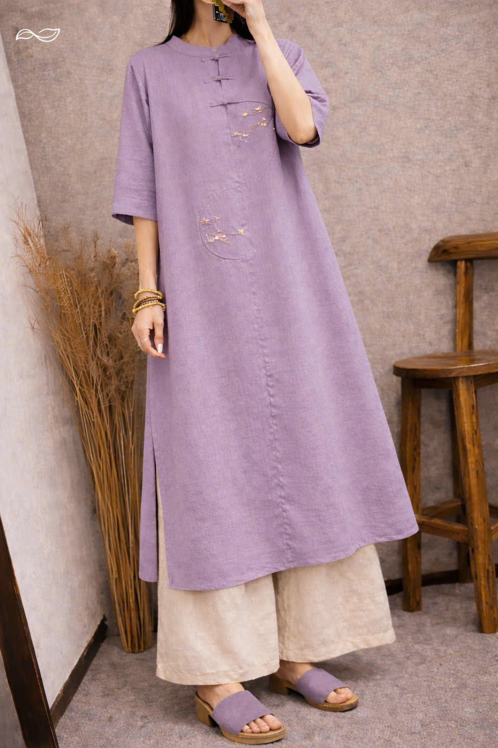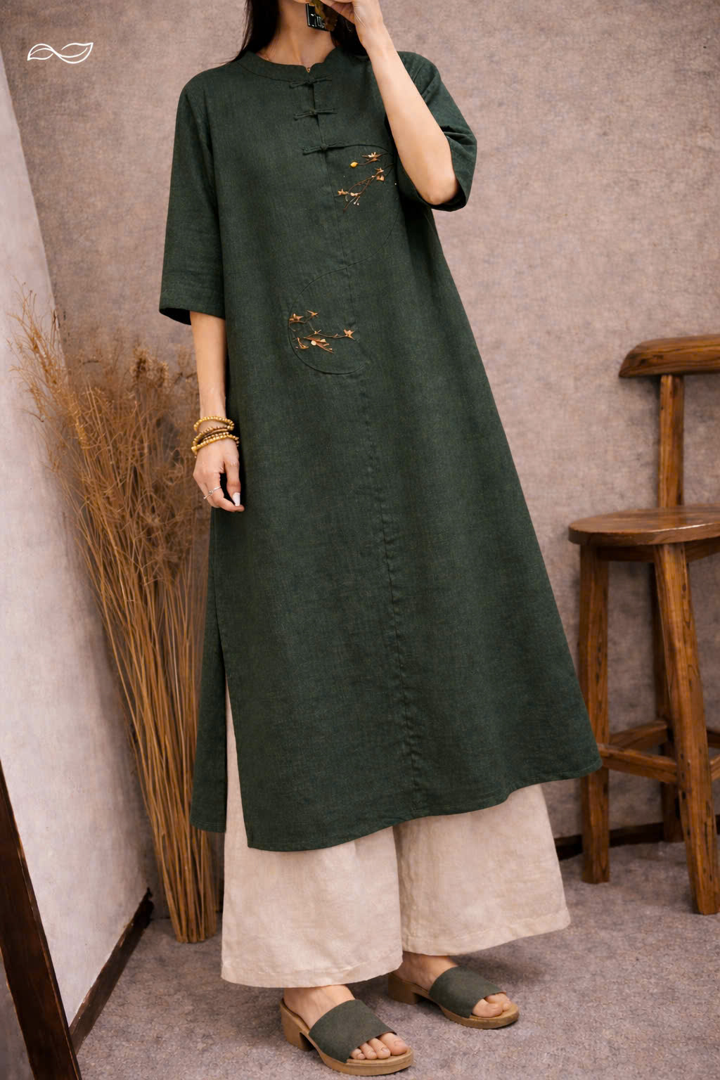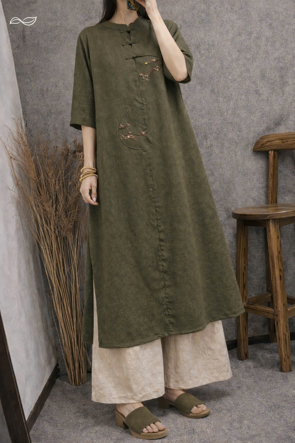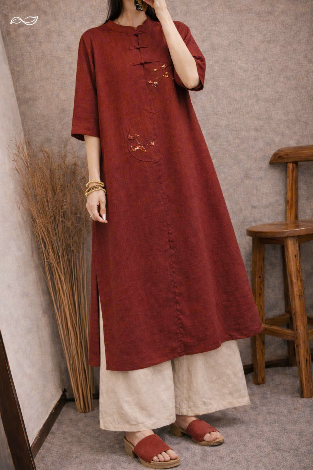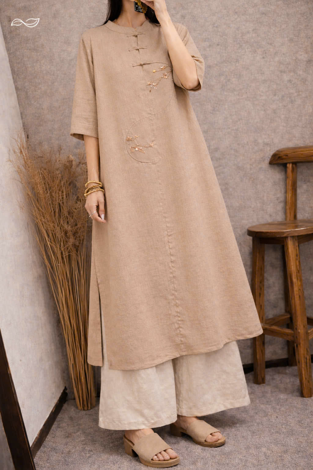 Váy áo dài linen thêu hoa dáng suông An Nhiên – BST Nhật Hoa