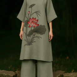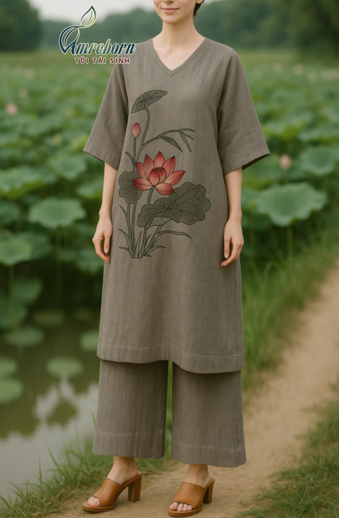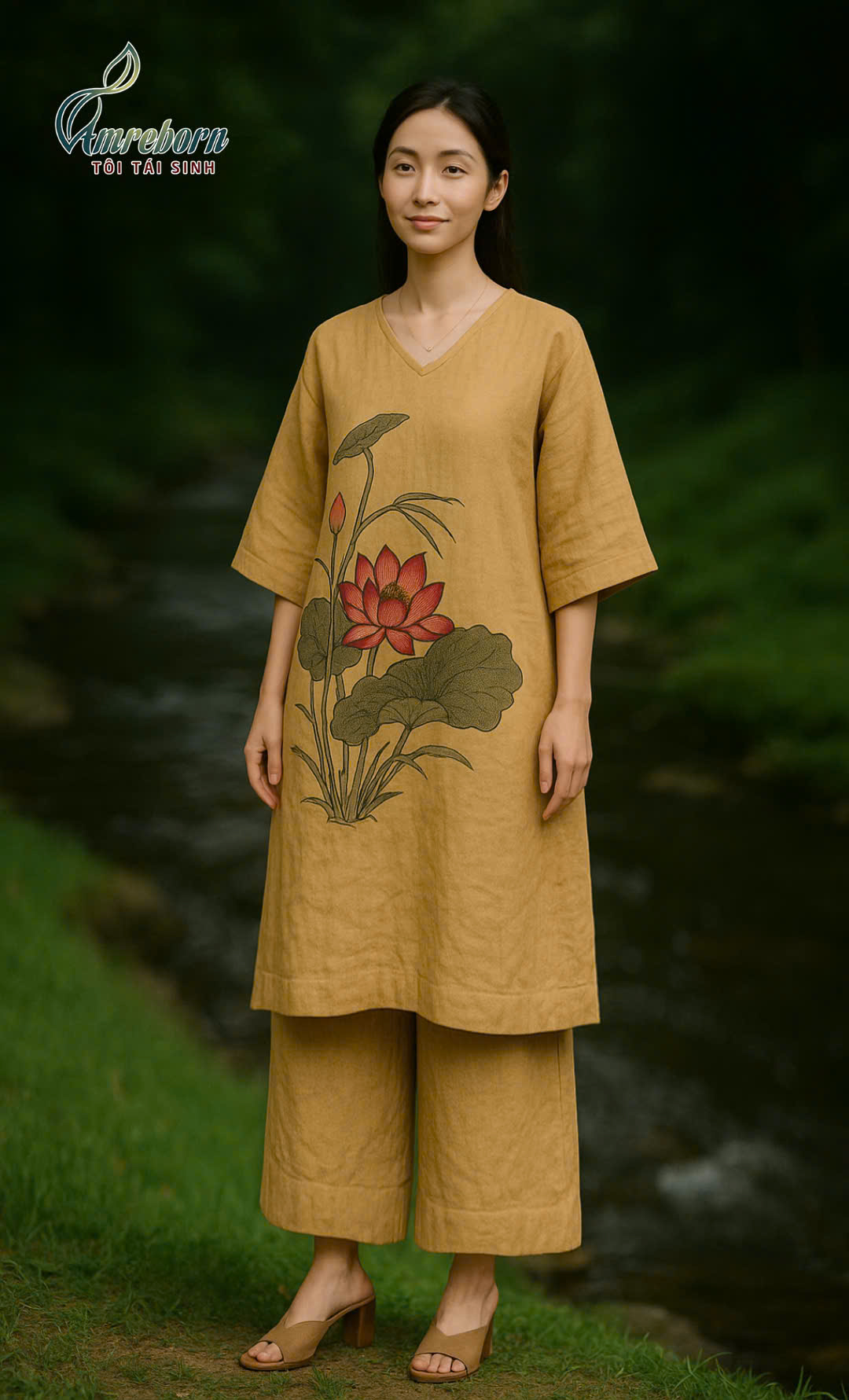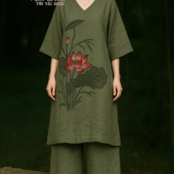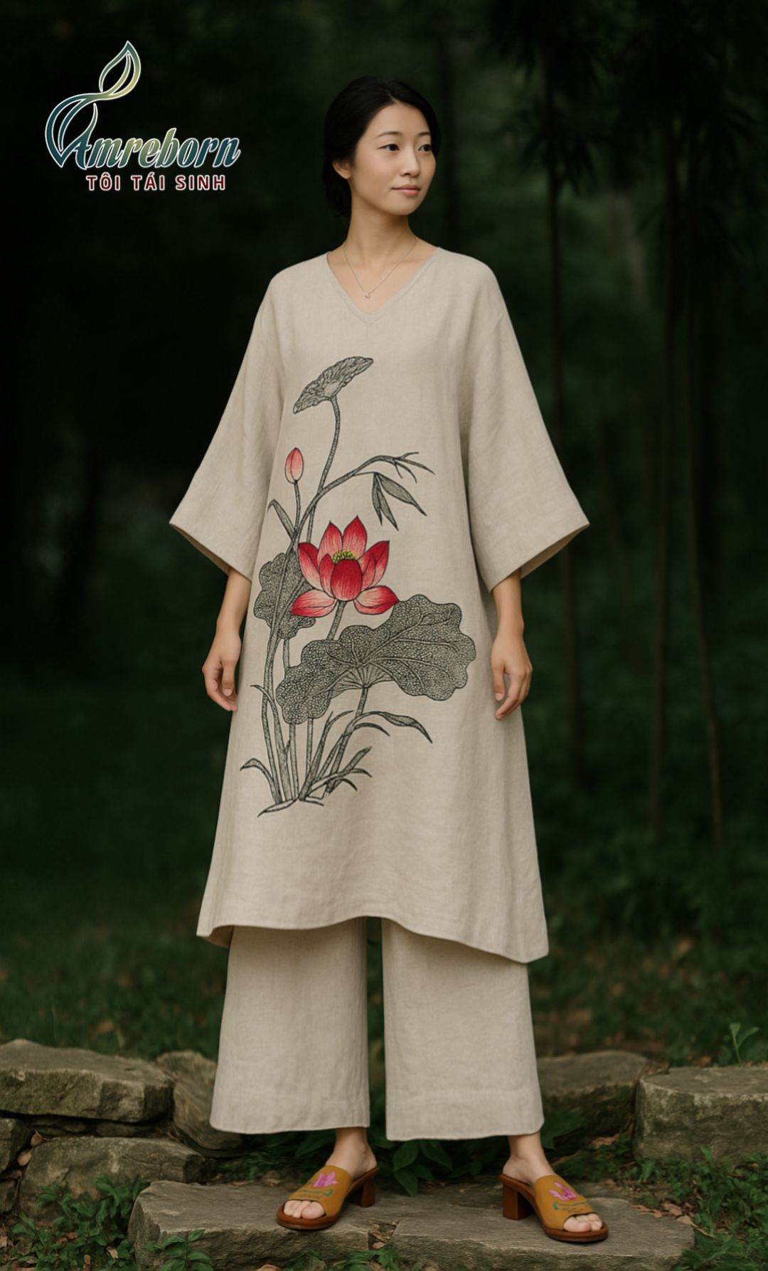 Váy áo dài linen thêu hoa sen Tịnh Liên