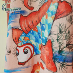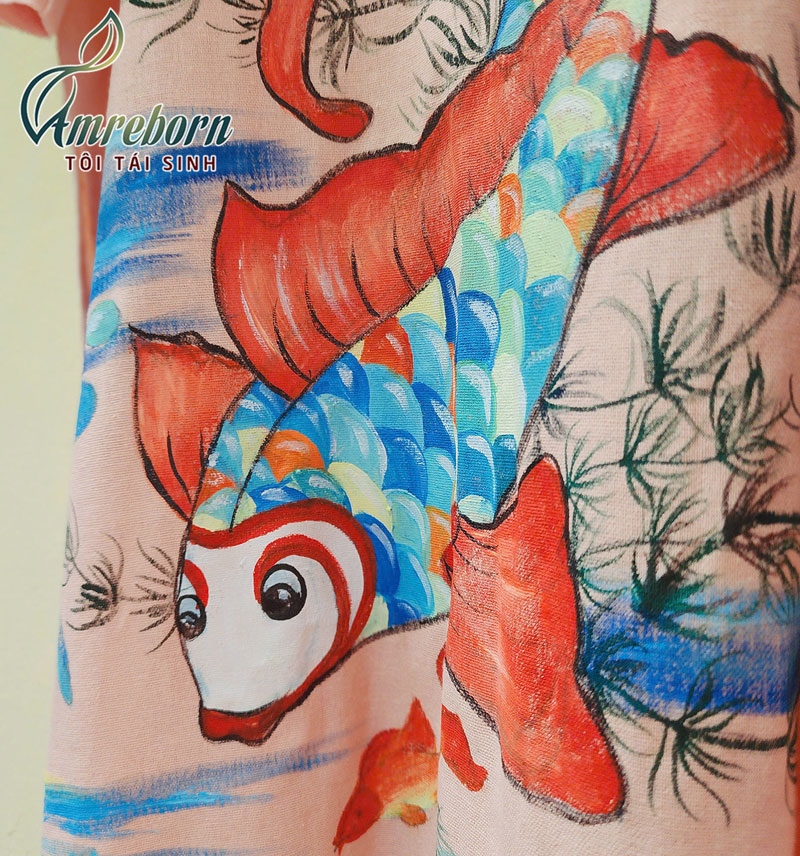 Váy áo dài linen vẽ tay tranh Đông hồ – Lý ngư vọng nguyệt