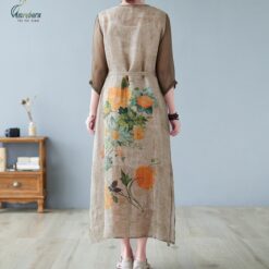 Váy linen thêu hoa dáng suông mặc thon gọn tôn dáng