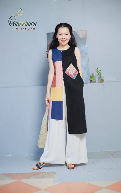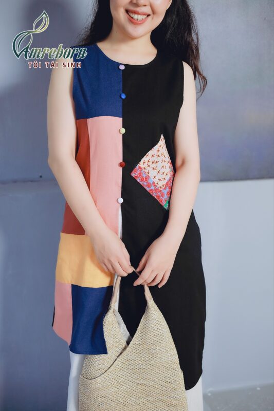 - Mỗi chiếc váy đều là độc bản vì được Am phối màu một cách ngẫu nhiên dựa theo kích thước và màu sắc của những miếng vải dư, vụn có sẵn