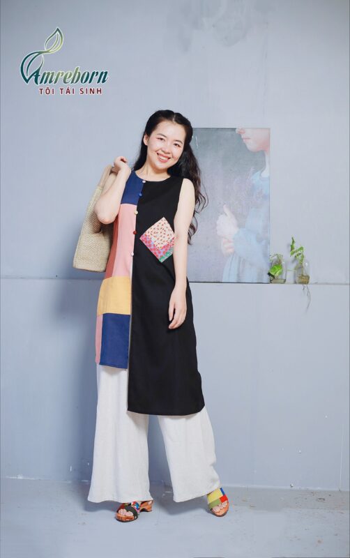- Được Am ghép từ những miếng vải vụn, vải dư chất liệu linen, vải sợi dứ… thân thiện với mọi làn da và môi trường